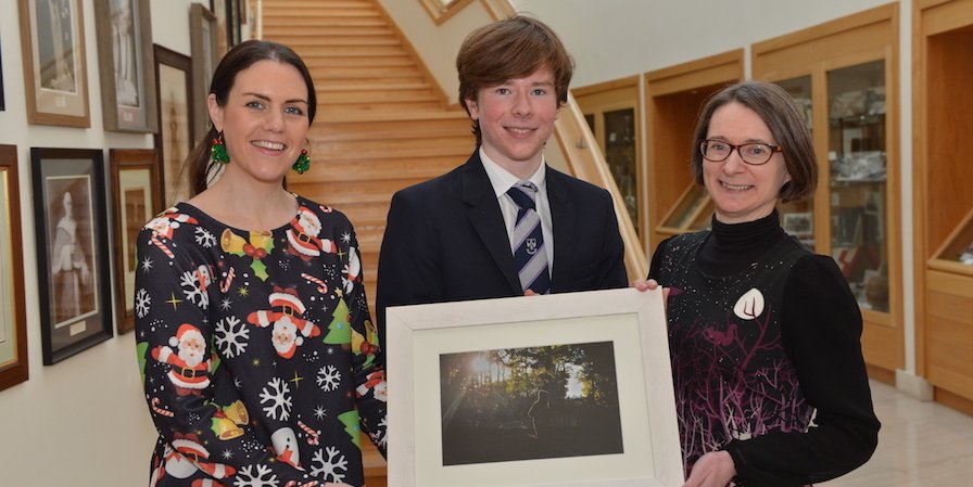 For both winners the outdoors and the power of light featured as their interpretation of the competition’s theme. Kieran’s observant eye caught a silhouette backlit by rays of sun in a woodland setting. Inspired by the German-American writer, Charles Bukowski he titled his photo ‘If there is light it will find you’. (Kieran is pictured above accompanied by Pastoral Co-Ordinator, Ms Anne Marie Dolan – doyenne of the Amber Flag project – and College Librarian, Ms Jane O’Loughlin. The two winning entries are below).