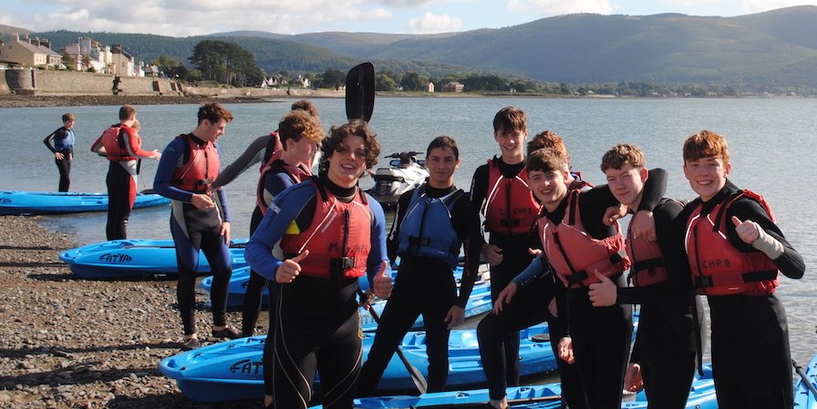 We arrived in the East Coast Adventure Centre in Rostrevor at lunchtime on Tuesday (September 25th) and were shown to our rooms or (in our case) pods outside the main building. At 14:00 we set out to walk 10km to a camp site where we were told to build our shelters (that we would be sleeping in!). Success was mixed but some people like James Ward and Frank Tang built great shelters covered in moss to keep the rain out too. Then we had stew around a campfire as it grew dark. Just as some of us began to wonder if we would have to sleep outside a member of the Adventure Centre gave us a tent and we fell asleep a little apprehensive of the Junior Cert Results we would receive the next day!